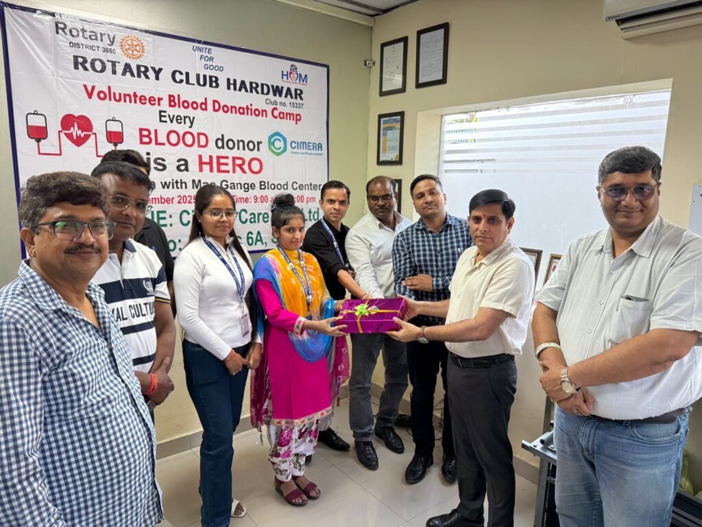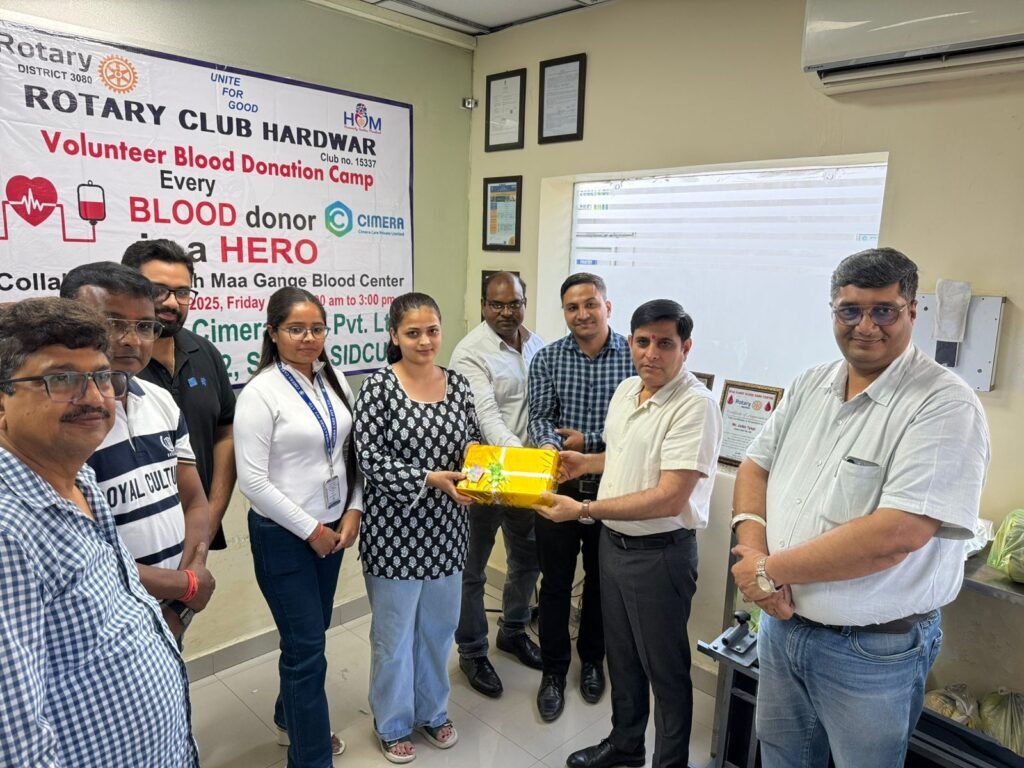 रोटरी हरद्वार* ने आज सिमेरा केयर प्रा. लि., सिडकुल, हरिद्वार के परिसर में एक *स्वैच्छिक रक्तदान शिविर* का आयोजन किया