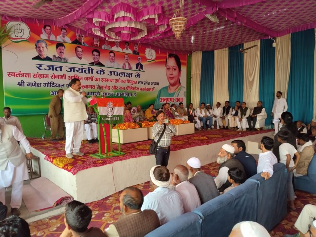 हरिद्वार 22 नवंबर 2025 को ग्राम जट बहादुरपुर में कांग्रेस पार्टी स्वतंत्रता संग्राम सेनानी आश्रित जनों का सम्मान एवं नव नियुक्त प्रदेश अध्यक्ष श्री गणेश गोदयाल जी का स्वागत समारोह कार्यक्रम भारी जन सैलाब के साथ बड़े ही धूमधाम तथा कार्यकर्ताओं के उत्साह के साथ संपन्न हुआ इस अवसर पर पूर्व मुख्यमंत्री श्री हरीश रावतलालढांग विधायक श्रीमती अनुपमा रावत महिला आयोग के पूर्व अध्यक्ष श्रीमती संतोष चौहान जिला पंचायत के पूर्व जिला उपाध्यक्ष राव अशफाक अफाक श्री वीरेंद्र सिंह रावत सहित भारी संख्या में पार्टी के वरिष्ठ नेता तथा कार्यकर्ता उपस्थित थे इस सभा को संबोधित करते हुए प्रदेश अध्यक्ष श्री गणेश गोदियाल ने कहा अब जनता समझ चुकी है कि उनका विकास सिर्फ कांग्रेस कर सकती है हर हाथ को काम हर जाति धर्म को सम्मान यही कांग्रेस का मुख्य एजेंडा है इस अवसर पर बोलते हुए पूर्व मुख्यमंत्री श्री हरीश रावत ने कहा वर्ष 2027 में उत्तराखंड में कांग्रेस का परचम लहराएगा इस अवसर पर बोलते हुए विधायक अनुपम रावत ने कहा मे आपकी बेटी हूं मुझे विधायक चुनकर आपने पूर्व में भी सेवा का अवसर दिया है और उम्मीद करती हूं कि 2027 में भी मुझे अपनी बेटी समझ कर आशीर्वाद प्रदान करेंगे इस अवसर पर श्री शकील अंसारी राजीव चौहान जिला अध्यक्ष बालेश्वर सिंह श्री सीपी सिंह मकतूर कुरैशी धर्मेंद्र चौहान मनोज सैनी मुरली मनोहर मुशर्रफ अंसारी किरण पाल वाल्मिक श्री अशोक शर्मा सहित भारी संख्या में कांग्रेस कार्यकर्ता तथा ग्रामीण उपस्थित थे ऐसा लग रहा था जैसे कांग्रेस की लहर दौड़ पड़ी हो विशेष रिपोर्टिंग वरिष्ठ पत्रकार ठाकुर मनोजानंद कैमरामैन प्रवीण कश्यप के साथ