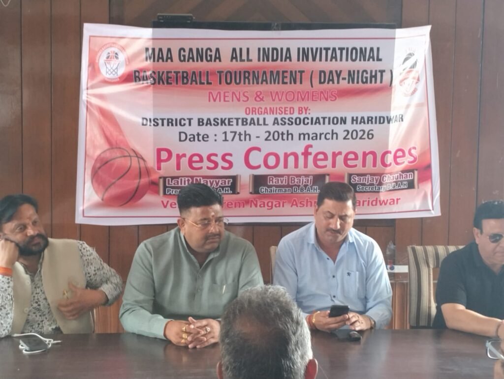 जिला बॉस्केबॉल एसोसिएशन की और से मां गंगा ऑल इंडिया इन्विटेशनल बॉस्केटबॉल टूर्नामेंट का आयोजन किया जा रहा है। जिला बॉस्केबॉल एसोसिएशन के अध्यक्ष ललित नैय्यर ने पत्रकारवार्ता में जानकारी देते हुए बताया कि मंगलवार से प्रेमनगर आश्रम में आयोजित किए जा रहे चार दिवसीय टूर्नामेंट में देश भर से 13 बास्केटबॉल टीम पुरूष और महिला वर्ग के मुकाबलों में प्रतिभाग करेंगी। विकास तिवारी ने कहा कि सरकार खेलों को लगातार बढ़ावा दे रही है। महिला खिलाड़ियों को भी आगे बढ़ाया जा रहा है। हरिद्वार में ऑल इंडिया स्तर की बॉस्केटबॉल प्रतियोगिता के आयोजन से स्थानीय खिलाड़ियों को प्रेरणा मिलेगी। इस दौरान विकास तिवारी, संजय चौहान, रवि बजाज भी मौजूद रहे।